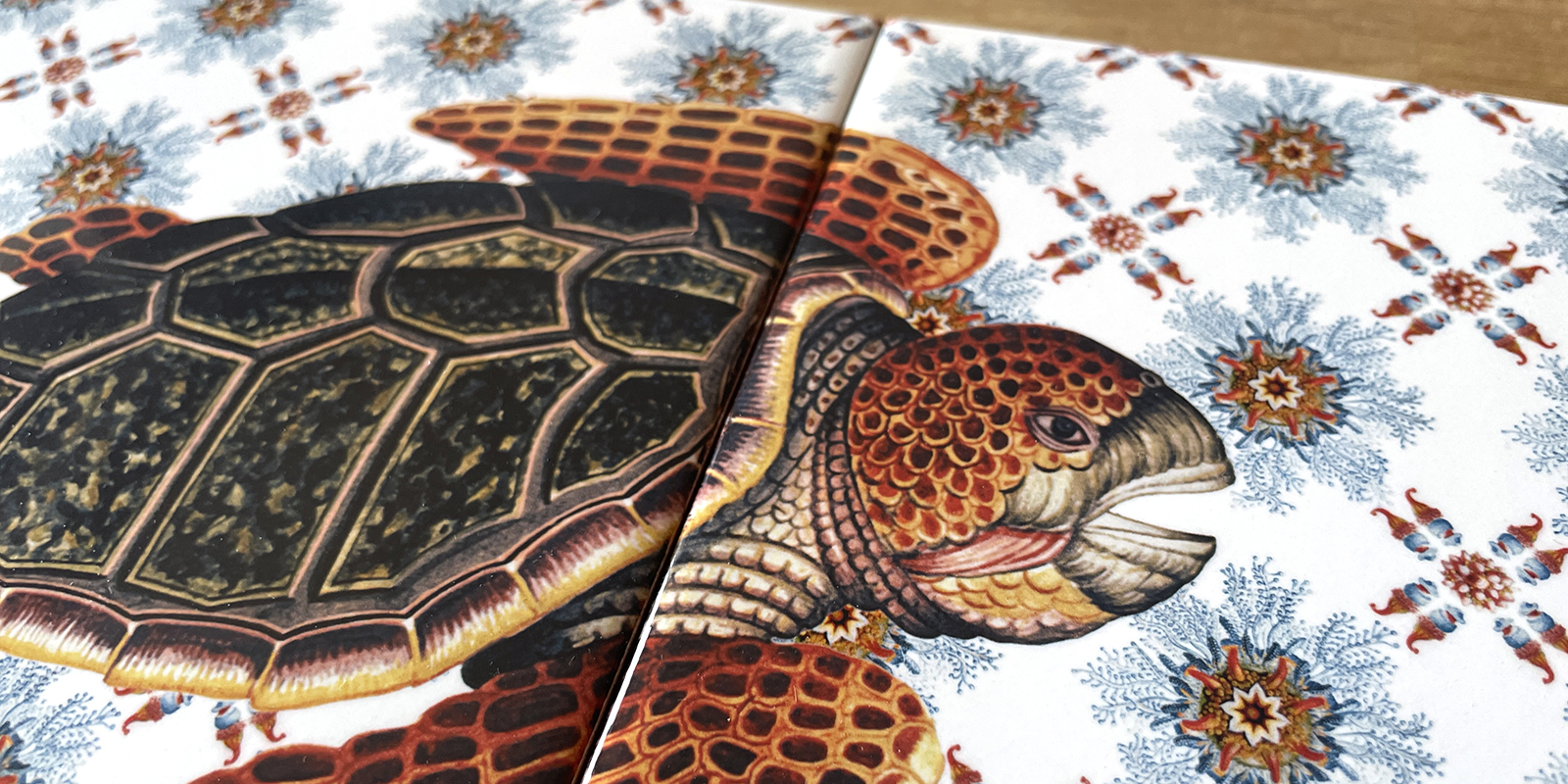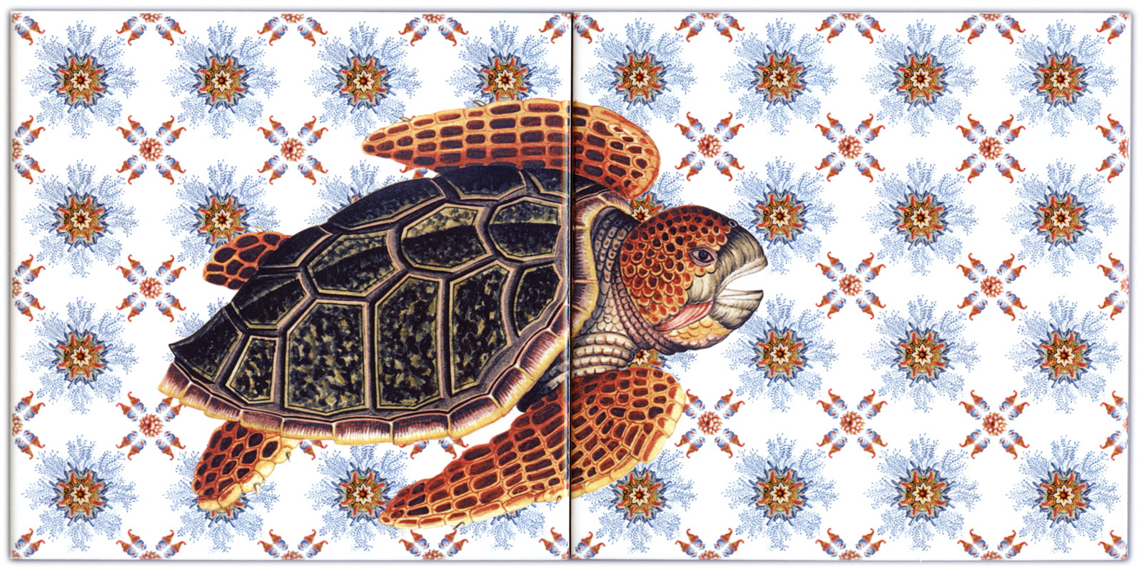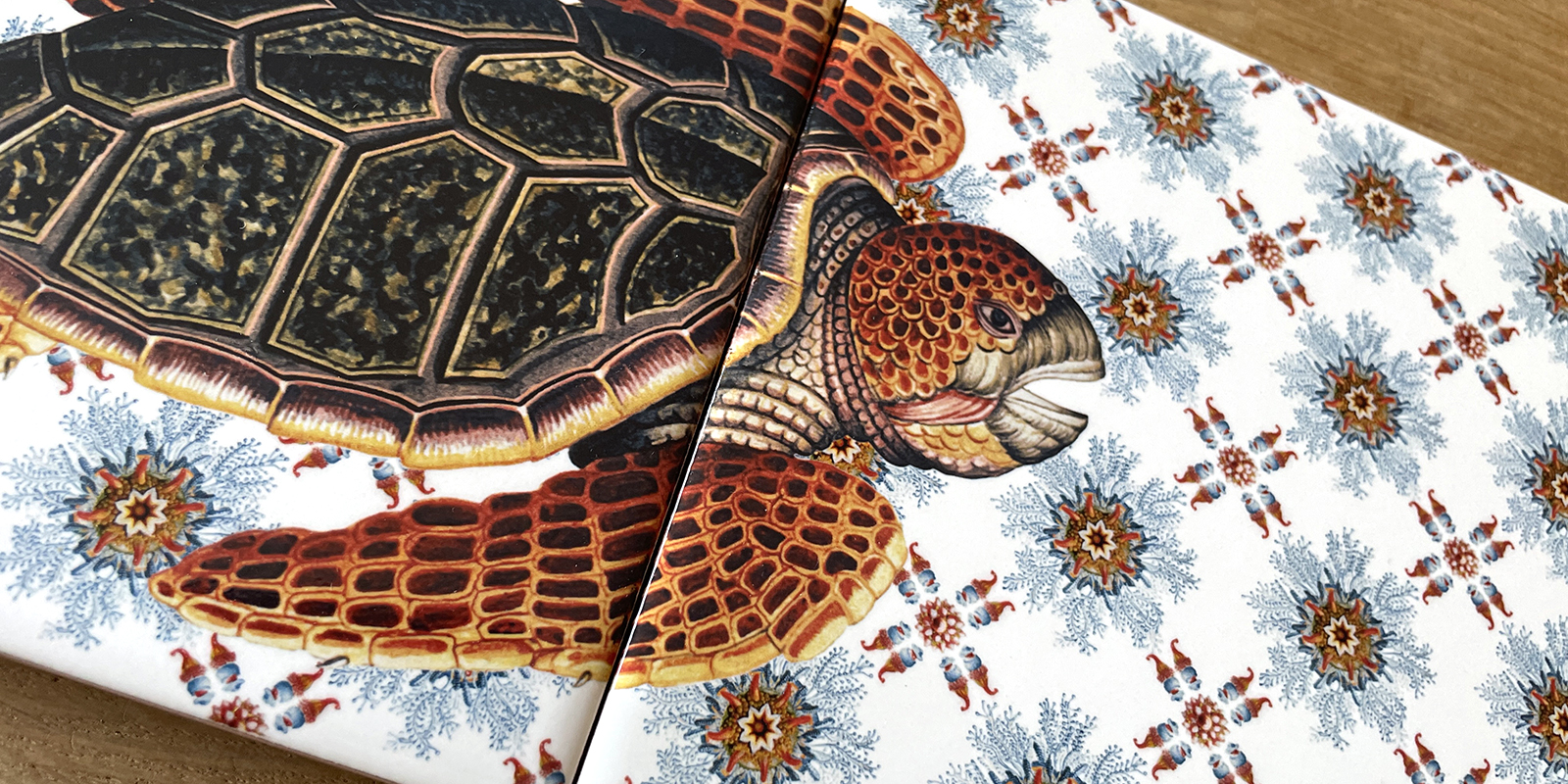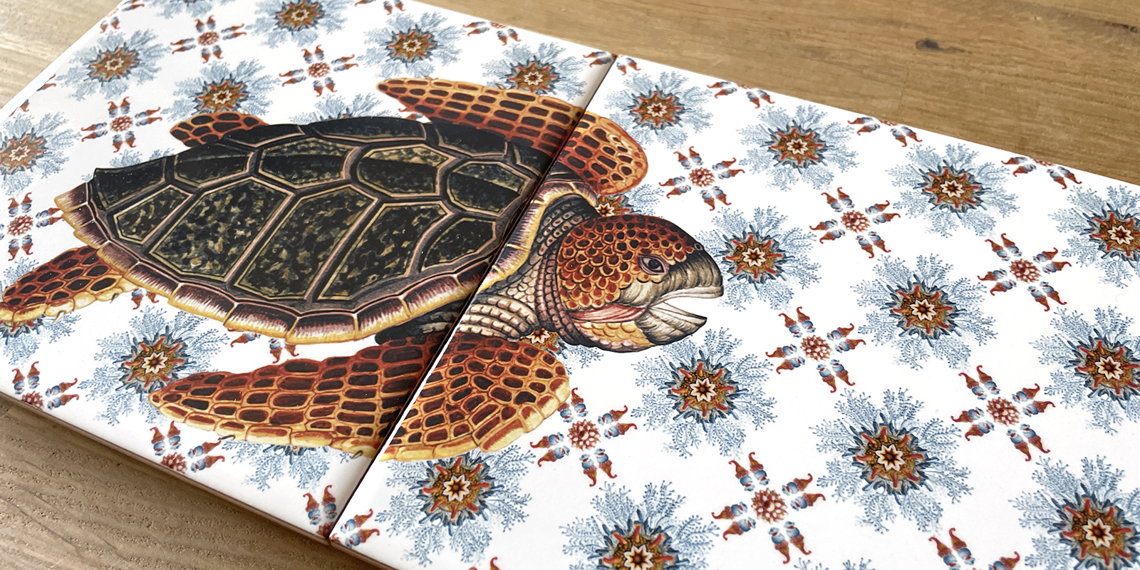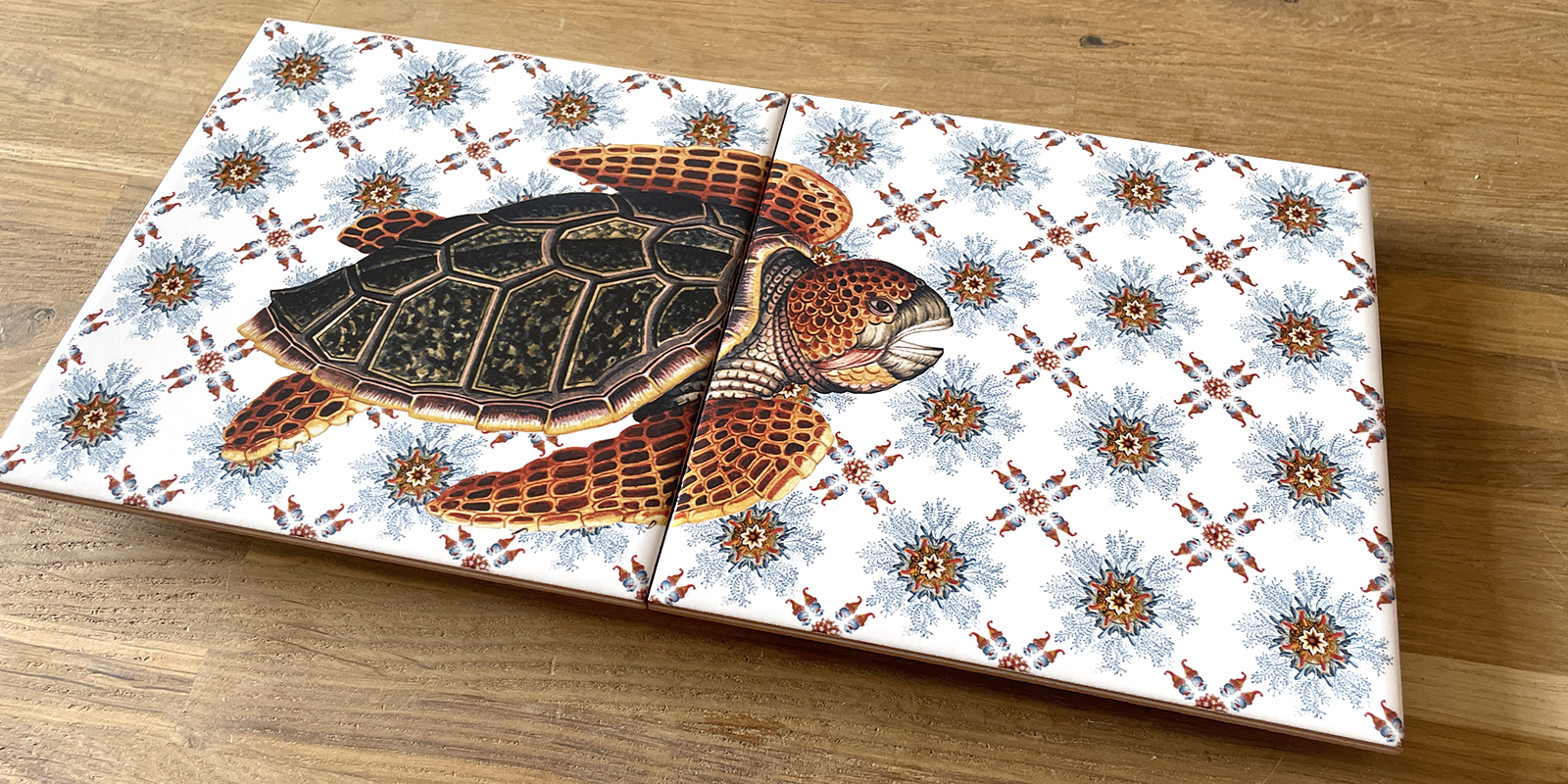 Inspired by the visual language of traditional Portuguese-Spanish wall tiles (azulejos), our designs combine ornamental play with realistic illustration. Scientific representations of different eras merge into new images that tell their own story. We play with the contrasts of science and art. Thus the ornaments of our tile pictures are composed of elements of Ernst Haeckel's scientific drawings. Because with Haeckel both spheres find each other. The love of nature grows into a curiosity about its essence and expresses itself in a wonderful way in the depiction of its forms and structures. Art and science are no longer a contradiction. Rather, they go hand in hand.